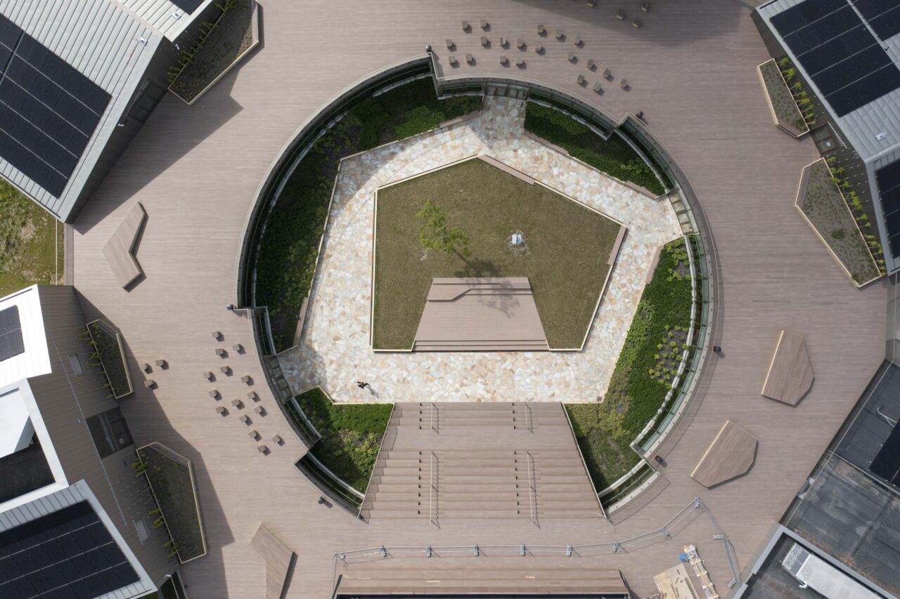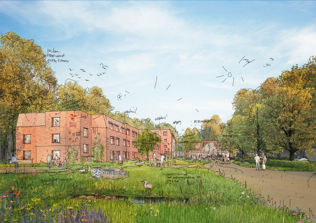 Circulair kindcentrum verbonden met landschap en beschermd dorpsgezicht