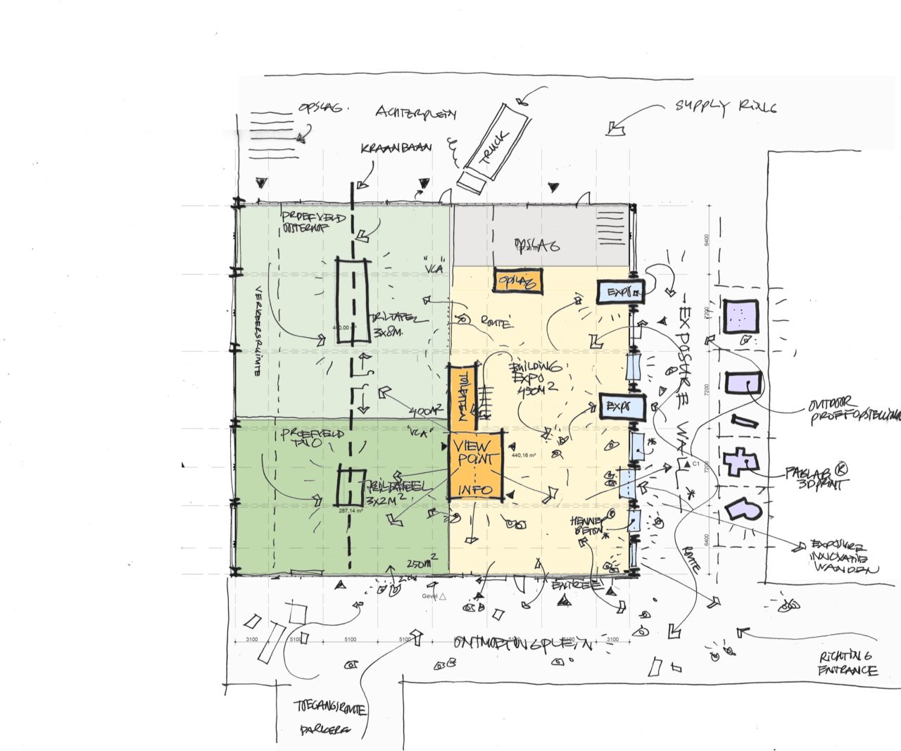 de Building testhal is het ontmoeting en innovatiecentrum en is onderdeel van het Entrance terrein.