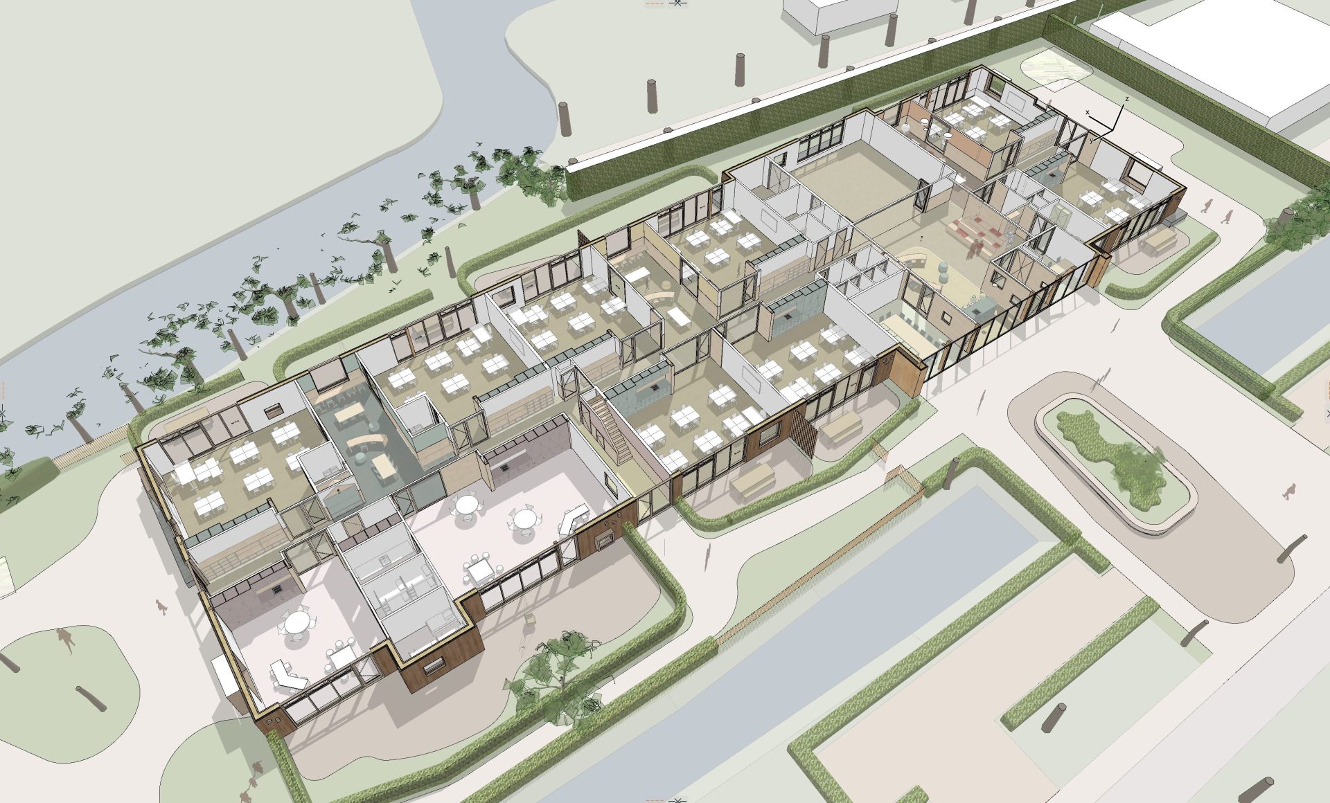 Circulair kindcentrum verbonden met landschap en beschermd dorpsgezicht