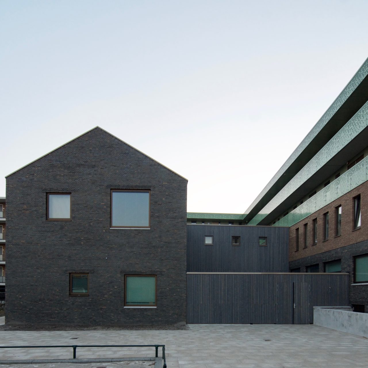 Het gebouw voegt zich naadloos in de omringende wijk. Naar alle kanten sluit de bouwhoogte aan op de omringende bouwhoogtes. De gevel en zijn ritmiek en plastiek sluiten aan op de (oude en nieuwe) baksteenarchitectuur van de omringende wijk. De detaillering en variaties in steen en metselwerk passen bij de Amsterdamse school-stijl van de wijk zorgen voor de uitstraling van een woongebouw. Diverse ruimtes in het gebouw bieden diverse