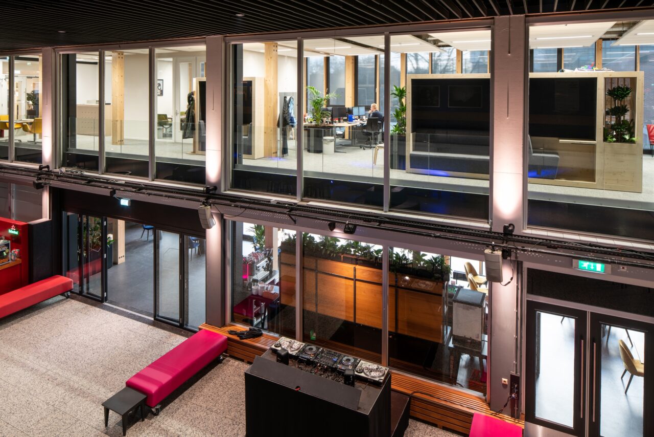De nieuwe kantoren hebben een functionele, in de lengte gezoneerde indeling van druk naar teruggetrokken: een loopzone; een zone met kantoorgroen en informele overlegplekken; een flexplek zone. Het nieuwe kantoorvolume heeft uitzicht op zowel de patio als de foyer.