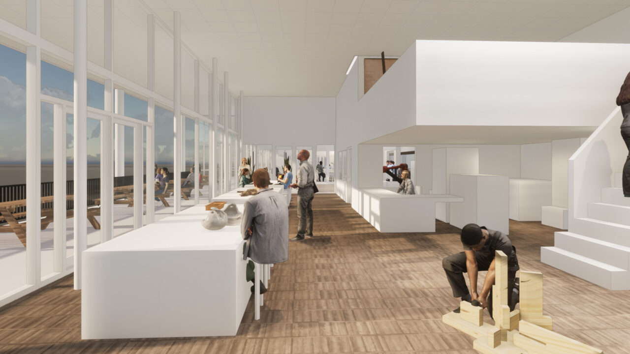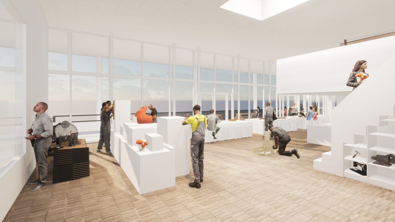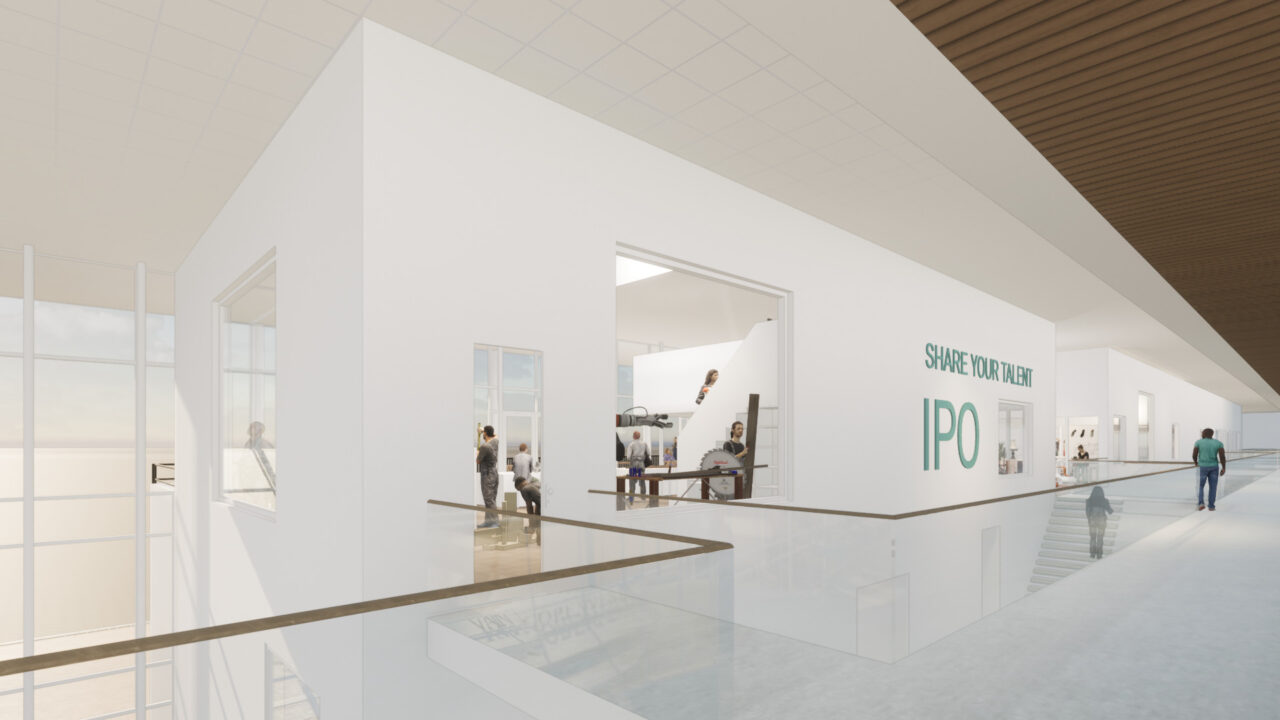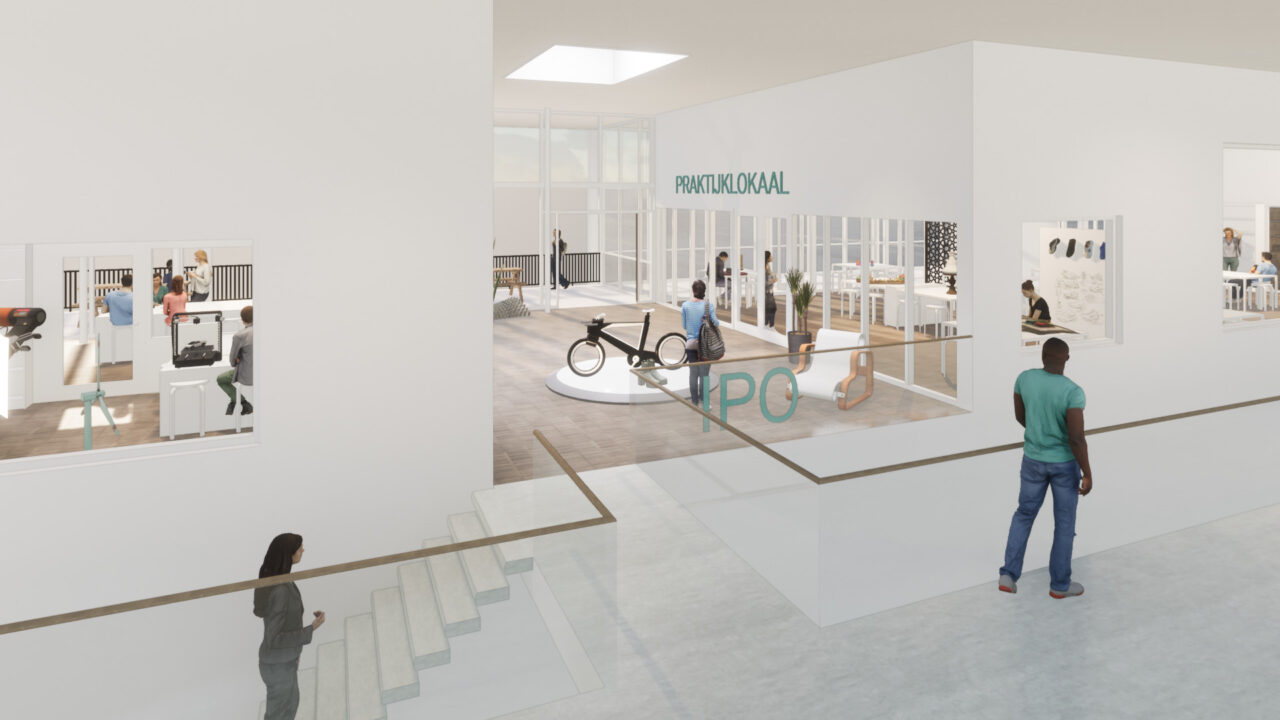 Op de verdieping is ruimte op maat ontworpen voor de huisvesting van de nieuw toegevoegde opleiding Industrieel Productontwerp. Door slimme ruimtelijke indeling zijn de atelierruimtes, collegezalen en studieplekken aangehaakt op de verbindende wintertuin achter de gevel. Hierdoor hebben alle onderwijsruimtes aangenaam daglicht en heeft een informele, gezamenlijke ruimte met groen. Hierdoor ontstaat de open, verbonden sfeer die past bij de aard van de opleiding.