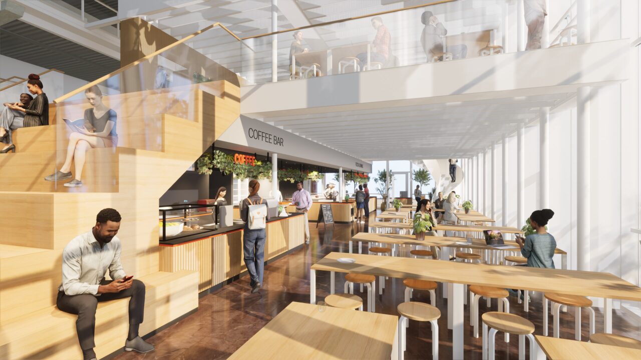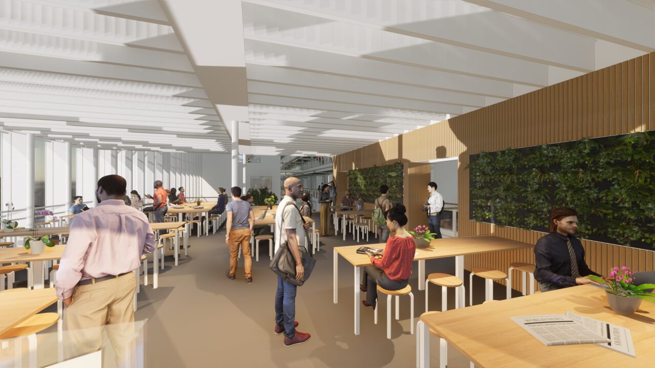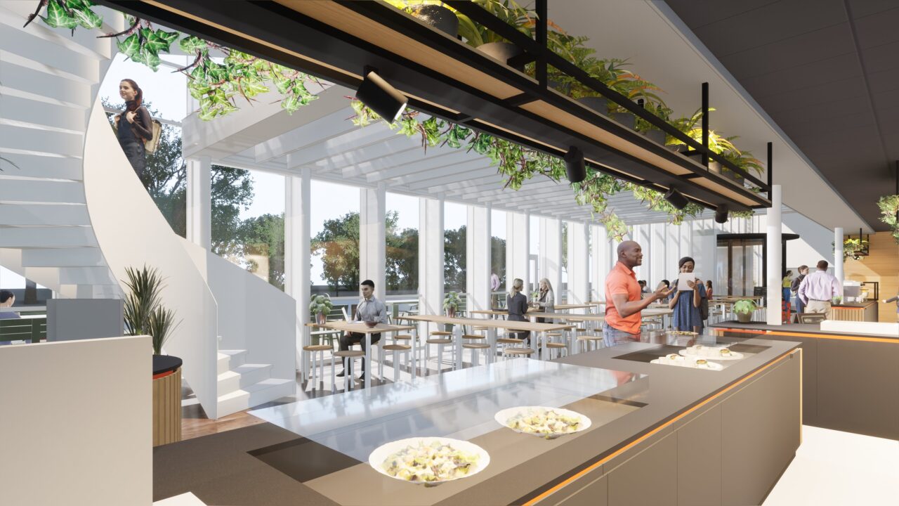 Het restaurant is verhuisd van een relatief verstopte plek op de verdieping naar een prominente situering over twee verdiepingen op de hoek van het gebouw. Hier bevond zich eerder grote balkonruimte die zorgde voor afstand tussen interieur van het gebouw en de omgeving. Door op deze plek een transparante gevel te realiseren, konden we ruimte maken voor het restaurant, gesitueerd aan een ruime wintertuin. Zo heb je vanuit de omgeving direct zicht op het levendige en aantrekkelijke interieur van de vernieuwde VanDoorenveste.