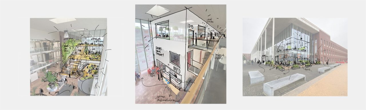 “Wat als we de VanDoorenVeste transparanter zouden kunnen maken? Met meer interne verbinding en een uitnodigend gezicht naar de omgeving?” Dit idee van de huisvestingsadviseur van de Hanzehogeschool tijdens een informeel gesprek legde de kiem voor de upgrade van de VanDoorenVeste op de Zernike Campus in Groningen. Gezamenlijk besloten we het idee verder te brengen, van geschetste mogelijkheden tot een businesscase met kostenraming tot een programma van eisen. Ook het uiteindelijke ontwerp maakten we in nauwe samenwerking met alle betrokken. Samen met de (nieuwe) gebruikers richtten we het ontwerp in op alle onderwijs behoeftes. En samen met de aannemer zorgden we voor een plan dat zonder sluiting van het gebouw uitgevoerd kon worden.